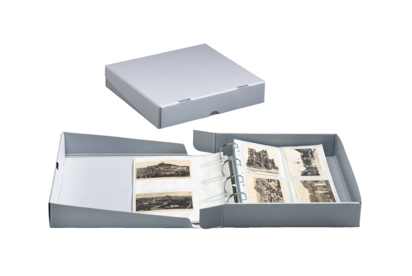 Συμπαγές, στιβαρό, στοιβαζόμενο κουτί αρχειοθέτησης, κατασκευασμένο από ένα ενιαίο κομμάτι. Ευέλικτο για την ασφαλή και επαγγελματική αποθήκευση εγγράφων, φωτογραφιών, διαφανειών, λωρίδων αρνητικών, καρτ ποστάλ, γραμματοσήμων, νομισμάτων και πολλών άλλων, τοποθετημένο σε διάτρητα διαφανή θήκες. Διαθέτοντας έναν υψηλής ποιότητας, στιβαρό μηχανισμό δακτυλίου, το κουτί αρχειοθέτησης χωράει περίπου 50-80 διαφανή θήκες με άκρες δεσίματος. Το ανθεκτικό στη γήρανση, υψηλής ποιότητας χαρτόνι αρχειοθέτησης παρέχει στο κουτί αρχειοθέτησης υψηλή σταθερότητα και ασφάλεια. Στο εσωτερικό, δύο λευκές, μη αποθηκευμένες φωτογραφικές σανίδες αρχειοθέτησης παρέχουν άμεση προστασία για τις αποθηκευμένες εικόνες.
