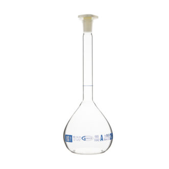 Με πώμα PE και κατασκευασμένο από βοριοπυριτικό γυαλί 3.3 κορυφαίας ποιότητας. Σχεδιασμένο σύμφωνα με τα πρότυπα ISO 1042, DIN 12664 και βαθμονομημένο για να περιέχει (TC, In). Η συμμόρφωση με τους “Eichordnung” (τους Γερμανικούς Ομοσπονδιακούς Κανονισμούς Μέτρων και Σταθμών) πιστοποιείται μέσω της επίσημης ένδειξης “DE-M (έτος)” σε κάθε φιάλη. Κάθε φιάλη φέρει τον δικό της ατομικό σειριακό αριθμό τυπωμένο. Παραδίδεται ένα ατομικό πιστοποιητικό βαθμονόμησης που δείχνει τον πραγματικό όγκο της συγκεκριμένης φιάλης.