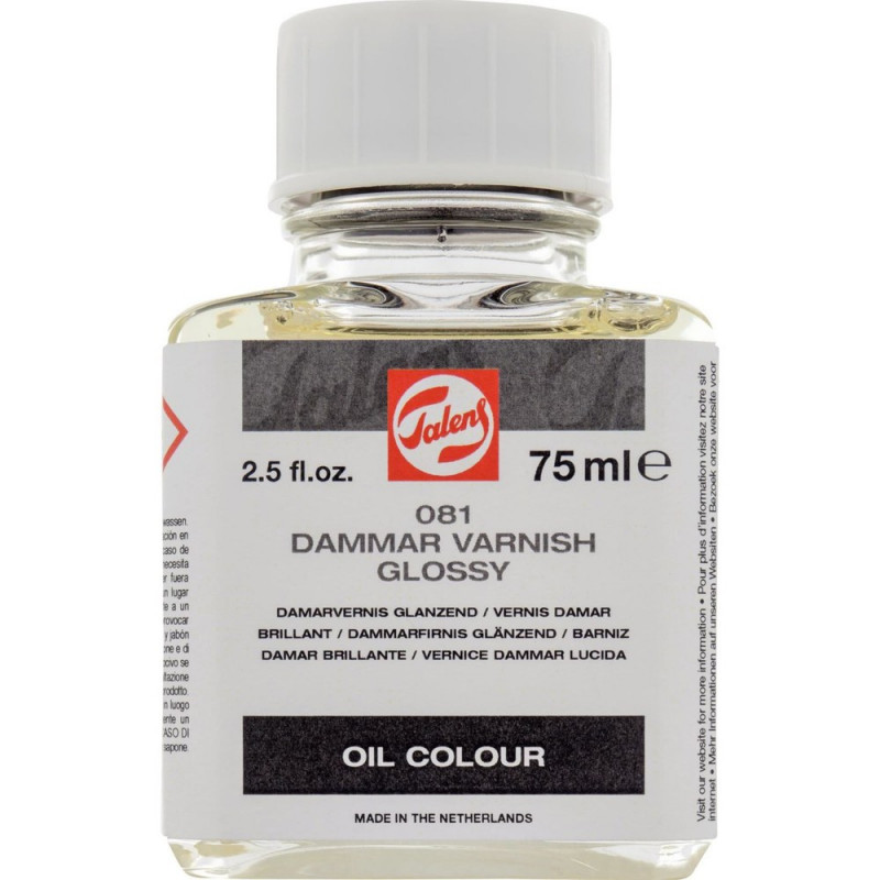 Σκοπός: Προστασία ελαιογραφίας. Σύνθεση: Ρητίνη Dammar, τερεβινθέλαιο • Παραδοσιακό τελικό βερνίκι • Εφαρμόστε όταν το φιλμ χρώματος έχει στεγνώσει τελείως (περίπου 1 έτος με κανονικό πάχος στρώσης) • Στεγνώνει σε λίγες ώρες • Μπορεί να εμφανίσει σημάδια γήρανσης μετά από κάποιο χρονικό διάστημα, όπως κιτρίνισμα και τρίξιμο • Δίνει υψηλή στιλπνότητα • Ανάμειξη με βερνίκι Dammar ματ 082 μειώνει τον βαθμό γυαλάδας • Μπορεί να αραιωθεί με νέφτι, καθαρά πινέλα με white spirit ή νέφτι • Τα στεγνά βερνίκια μπορούν να αφαιρεθούν με νέφτι • Πολύ εύφλεκτο